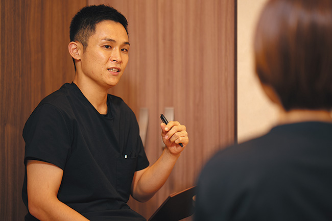 カウンセリングには30分ほどをかけ、筋膜に働きかけることでどんな症状が現れるかなども説明し、納得してもらった上で施術を行う。