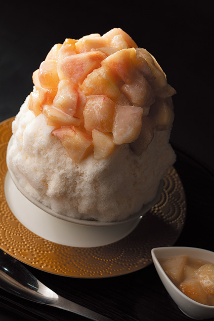 グラスに入り切らないほど大きな桃を使った芸術性豊かな一杯。提供時期は7月~9月頃。¥1,900