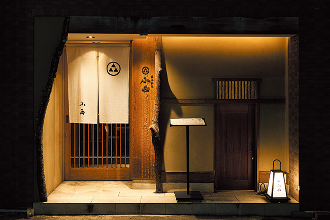 夜も賑やかな幹線道路沿いにありながら、静寂をまとった数寄屋造り風の構えが印象的な『日本料理 小西』。店主の小西孝浩さんは『京都吉兆』や『河文』といった名だたる料亭で研鑽を積み、独立開業して2025年9月で9年目に突入した。日本料理を受け継ぐ先人に学び、伝統と文化を大切にしながら、現在は女将と2人で営んでいる。