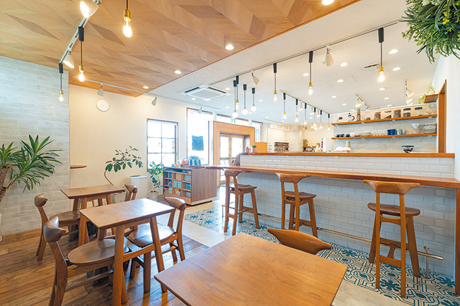 「地域の方々が集う、愛される店を目指したい」という思いからイートインスペースも設けられており、木の椅子やテーブルが温もりを醸し出している。
