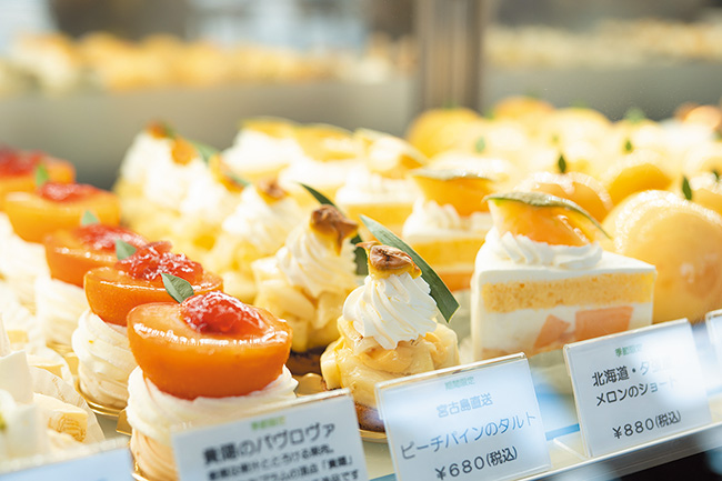 厳選素材を生かし、一つひとつを誠実に仕立てる、『アンドケイクスパッチ』。生クリームは何種類もの中から店にふさわしいものを選び、小麦粉は国産を主に用いている。人気のフルーツタルトに使う果物の中には、仕入れ先と連絡を取り合い、全国の産地から旬を届けてもらうものもあるという。スパイスの効かせ方も同店ならではの工夫が光る。例えばフランボワーズケーキのレシピにカルダモンをわずかに加えることで、メインの素材を引き立たせ上品で奥行きのある味わいに仕上げている。