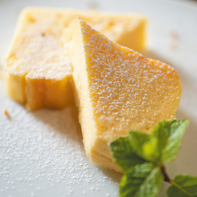 ふんわりなめらかな口当たりのチーズケーキ¥638。ホールサイズ(18cm)¥4,290も予約販売。