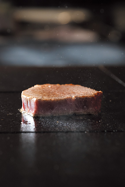 溶岩プレートでじっくり焼き上げる和牛ステーキ