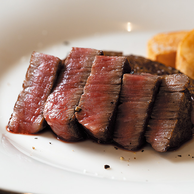 肉質はもちろん焼きにもこだわる同店。特注の溶岩プレートがポイントだ。遠赤外線効果と250〜280℃の絶妙な焼き加減で、水分を残して柔らかくジューシーな食味を生む。野菜も同様の効果があり、焼き野菜や季節のデザート等を含むコース料理が人気だ。
