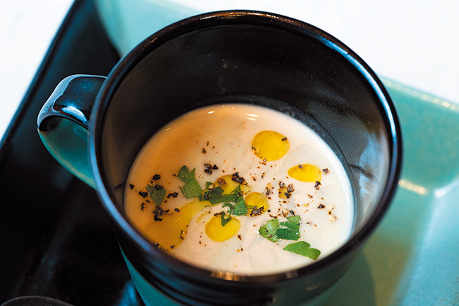 丁寧に蒸した栗に3種のスパイスを加えたスープの熊本県産利平栗のヴルーテ。