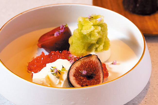 いちじく 紫蘇のグラニータ。いちじくの甘さと紫蘇の香りが楽しめる一皿。