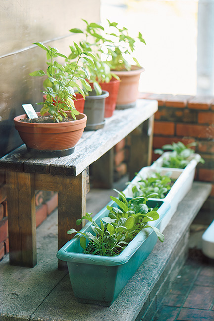 テラスには店で出た野菜の端材などを肥料にした菜園もあり、収穫体験などのイベントを開催することも。