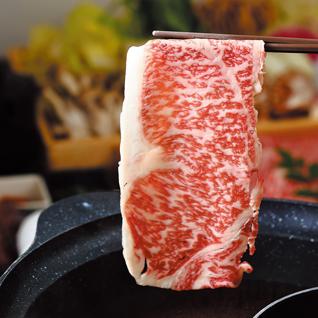濃厚な旨味の国産黒毛和牛。霜降りの脂がすき焼き・しゃぶしゃぶに溶け、絶妙の味わいに。