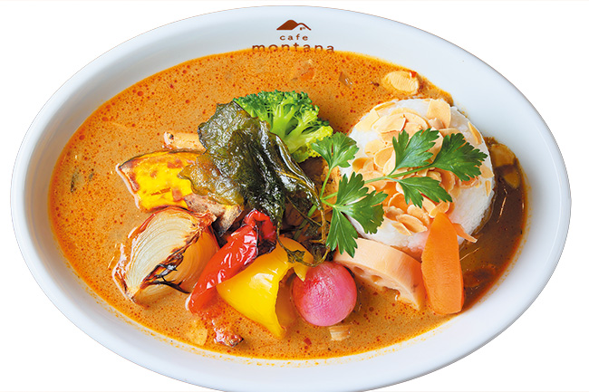 スパイスの効いた本格スープカレーと鶏肉や焼野菜のスリランカカレー(サラダ付)¥1,300も愛されメニューのひとつだ。