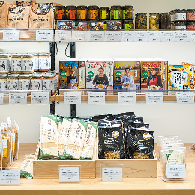 パスタやソース、おつまみ、調味料など多様な食品を厳選した“こだわりの食品コーナー”もチェックしたい。