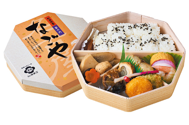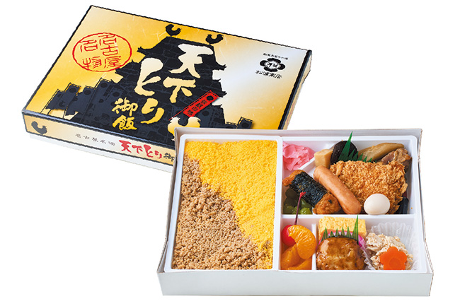 1922(大正11)年創業の老舗駅弁屋『松浦商店』。大須で営まれていた料亭をルーツとする同社が手掛ける弁当からは、素材のよさと手作りならではの温かみを感じられる。なかでも1932(昭和7)年に発売以来、リニューアルを重ねつつ現在まで愛され続けている「天下とり御飯」は代名詞的存在。鶏のだしで炊いたご飯の上に、「粉雪製法」という独自製法を用いて作ったきめの細かい卵そぼろを盛り付けた逸品だ。機械を使わず、熟練の技を持つ職人がしゃもじひとつで美しく盛り付けているという点にも驚かされる。今度この駅弁を旅のお供とする際は、ぜひ「美しさ」にも注目してほしい。