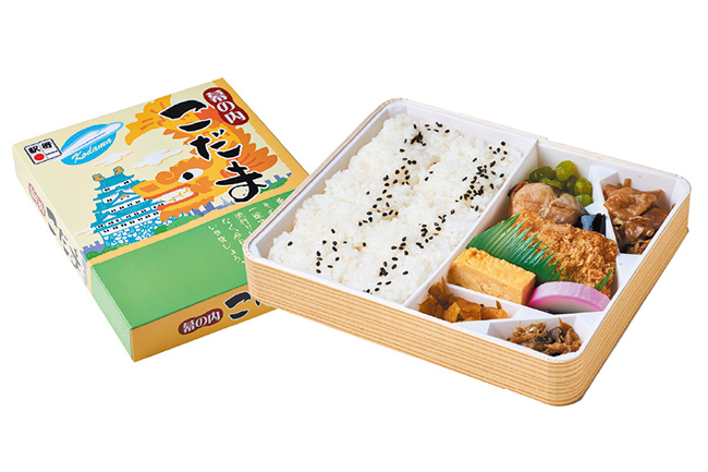 1964(昭和39)年、東海道新幹線開業の年に発売された歴史的な駅弁。ご飯に煮物、揚物、焼物という幕の内弁当のスタンダードだ。