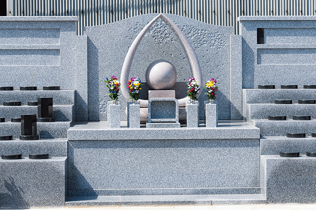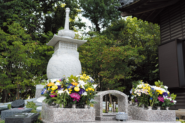 霊園内は庭師の手によって季節ごとの花が植えられ、彩り豊か。墓石に刻む言葉や花のデザインは自由に決められる。(一宮さくら彩苑)