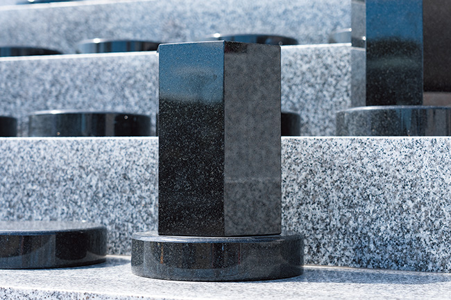 墓石は落ち着いた黒石のほか、美しく輝くクリスタルもあり、好みに応じて選べる。(春日井さくら彩苑)